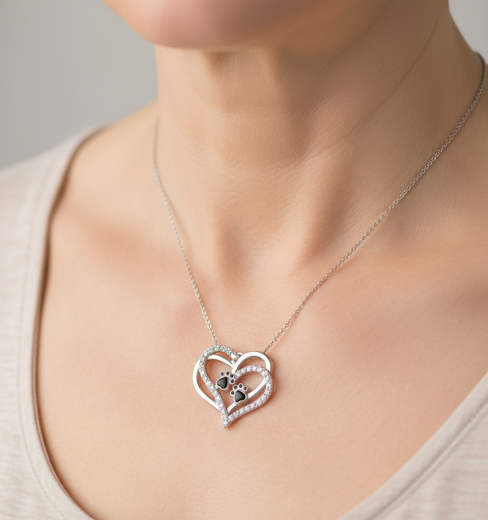 Kaklo grandinėlė su širdelės formos pakabuku ir šuns pėdsaku – emocingas papuošalas visiems, kurie savo širdyse nešioja šunis ir kitus gyvūnus. Šis unikalus širdelės formos pakabukas su pėdsaku simbolizuoja besąlygišką meilę, ištikimybę ir ypatingą ryšį su gyvūnais.