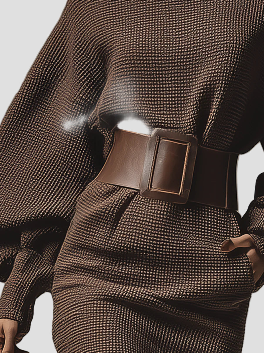 -Išryškintas siluetas: tekstūruotas diržas švelniai pabrėžia liemenį ir vizualiai lieknina.