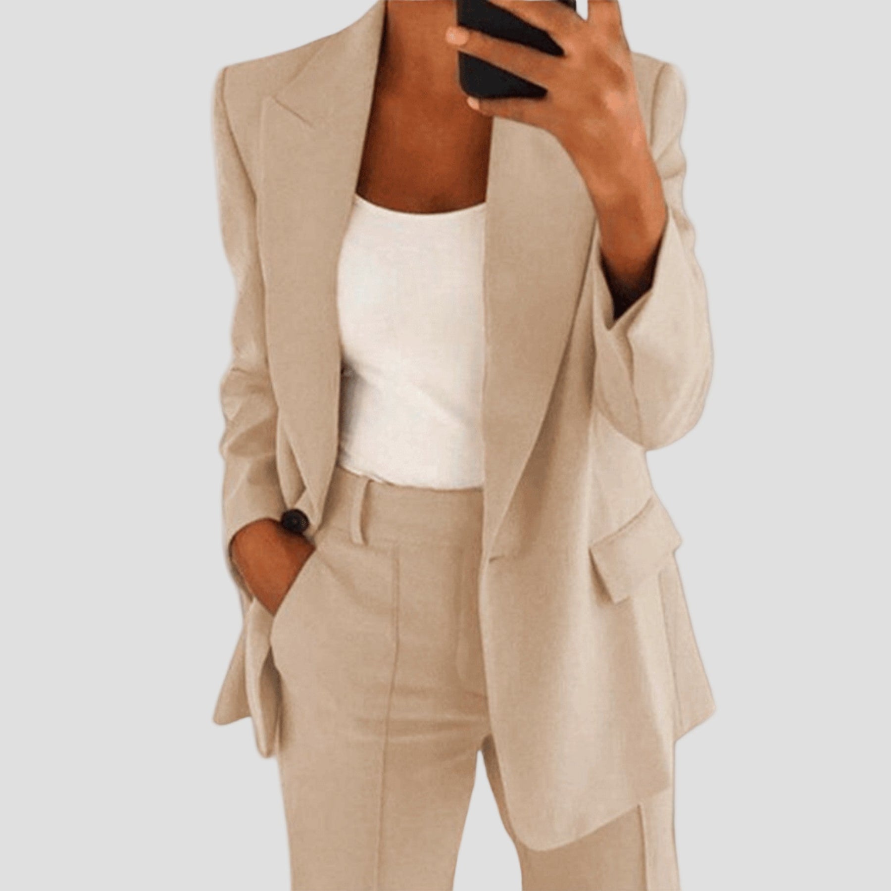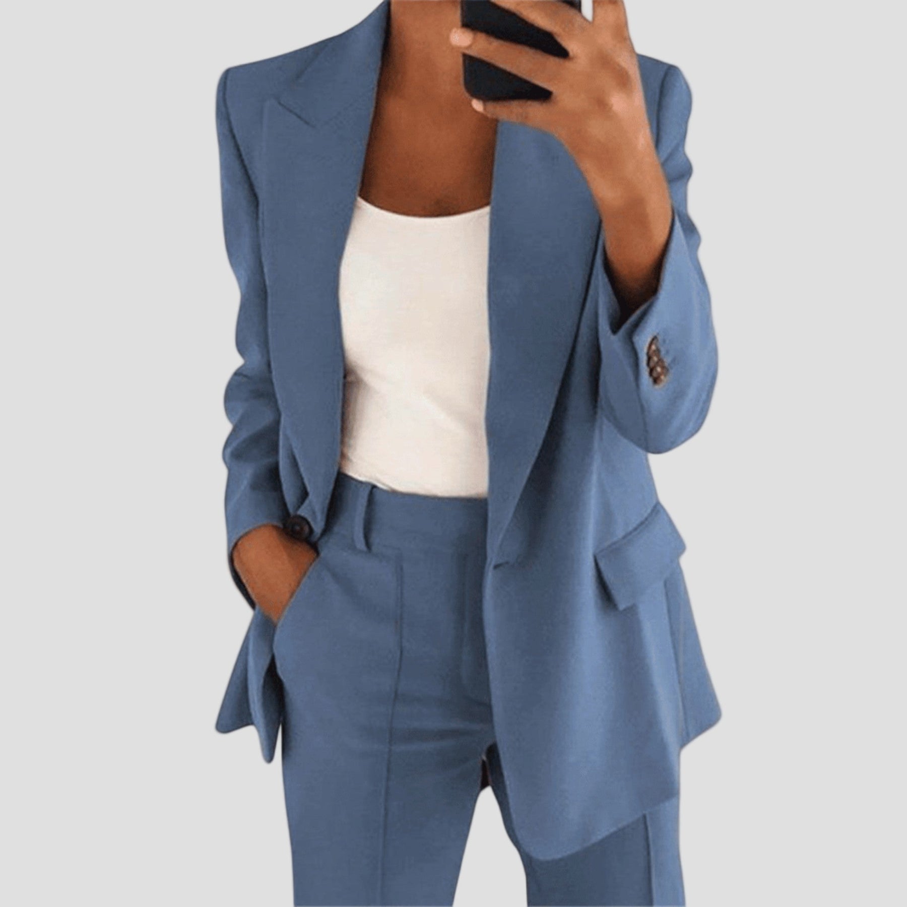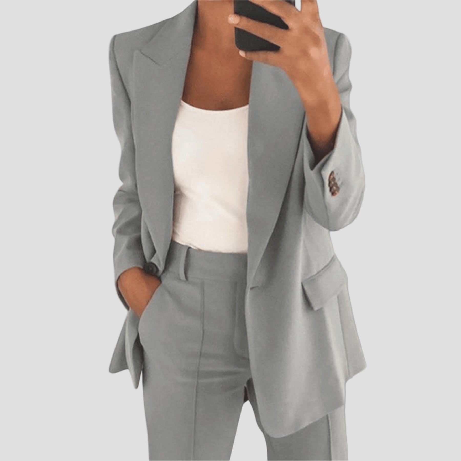 Atraskite puikų rafinuotumo ir komforto balansą su „Eglė“ komplektu. Šis stilius derina modernų kirpimą ir nepriekaištingą apdailą, todėl idealiai tinka moterims, norinčioms bet kokia proga atrodyti pasitikinčiomis, stilingomis ir profesionaliomis.