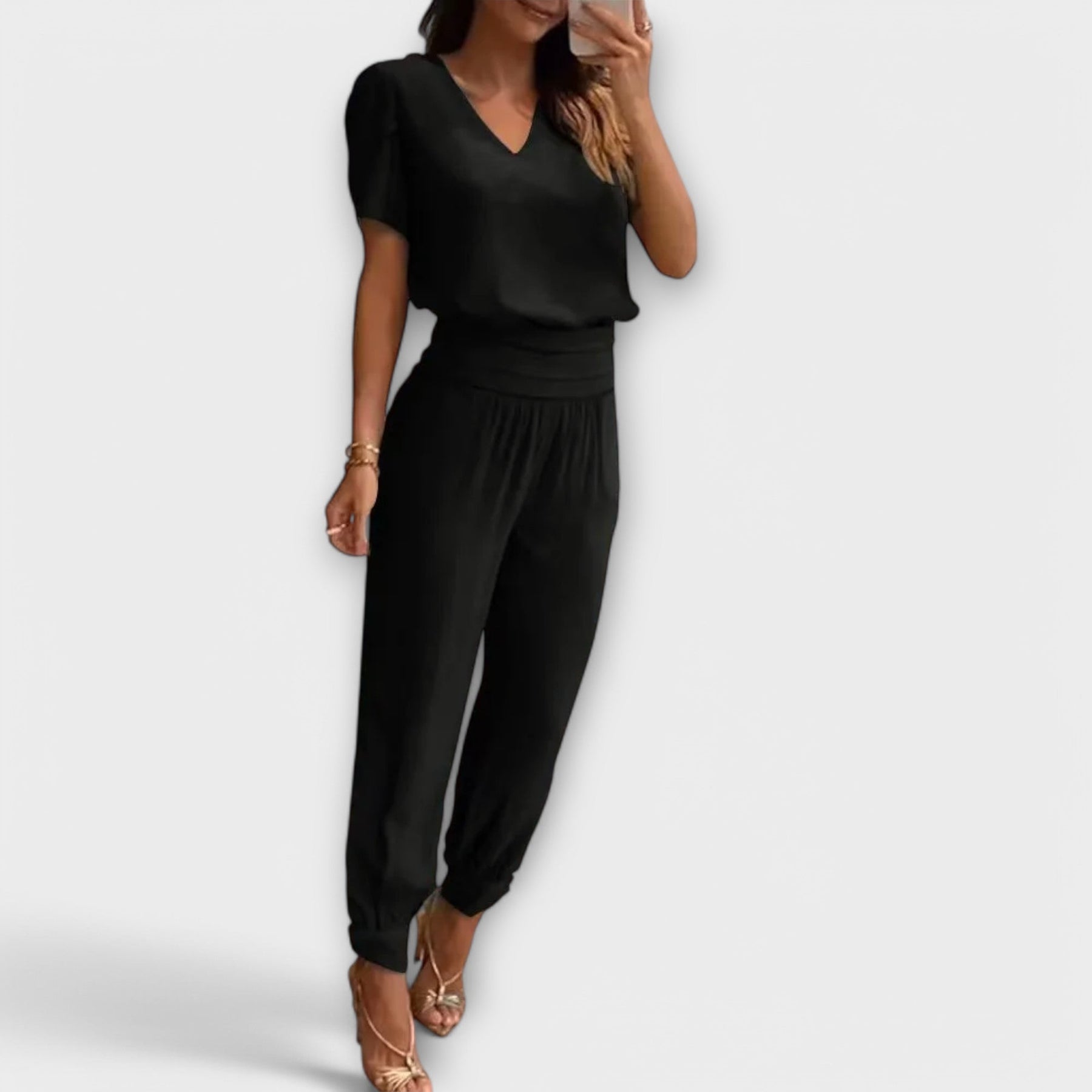 Irmelin – Elegantiškas Komplektas su Viršumi ir Kelnėmis sujungia modernų dizainą su aukščiausiu komfortu. Formą pabrėžianti siluetas akcentuoja figūrą, o aukštos kokybės medžiagos suteikia malonų dėvėjimo jausmą. Nesvarbu, ar tai būtų atsipalaidavęs pasivaikščiojimas po miestą, ar formali susirinkimas – šis komplektas yra puikus pasirinkimas įvairiems stiliams.