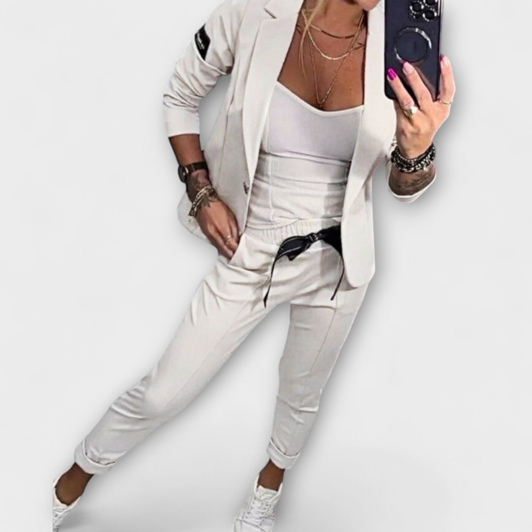 Stilingas koordinuotas komplektas, kuris pagerina jūsų išvaizdą bet kokiai progai.