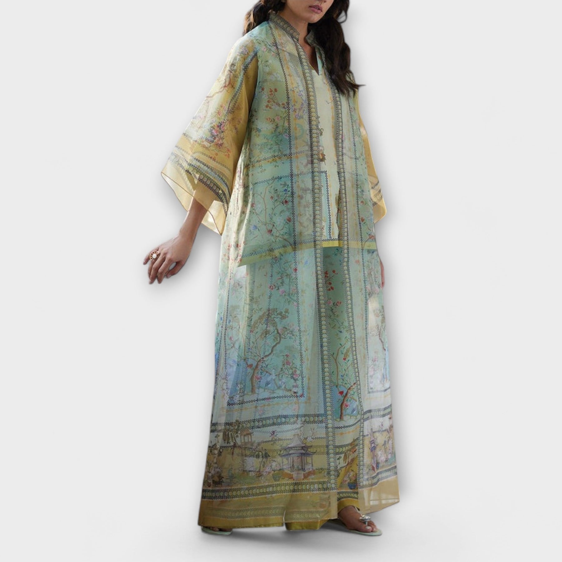Pagamintas iš aukštos kokybės poliesterio, šis viršus turi elegantiškas trompetės rankoves ir stilingą stovinčią apykaklę, todėl jis puikiai tinka bet kokiai progai, nesvarbu, ar tai būtų vakarėlis, kasdienis naudojimas ar atostogos.