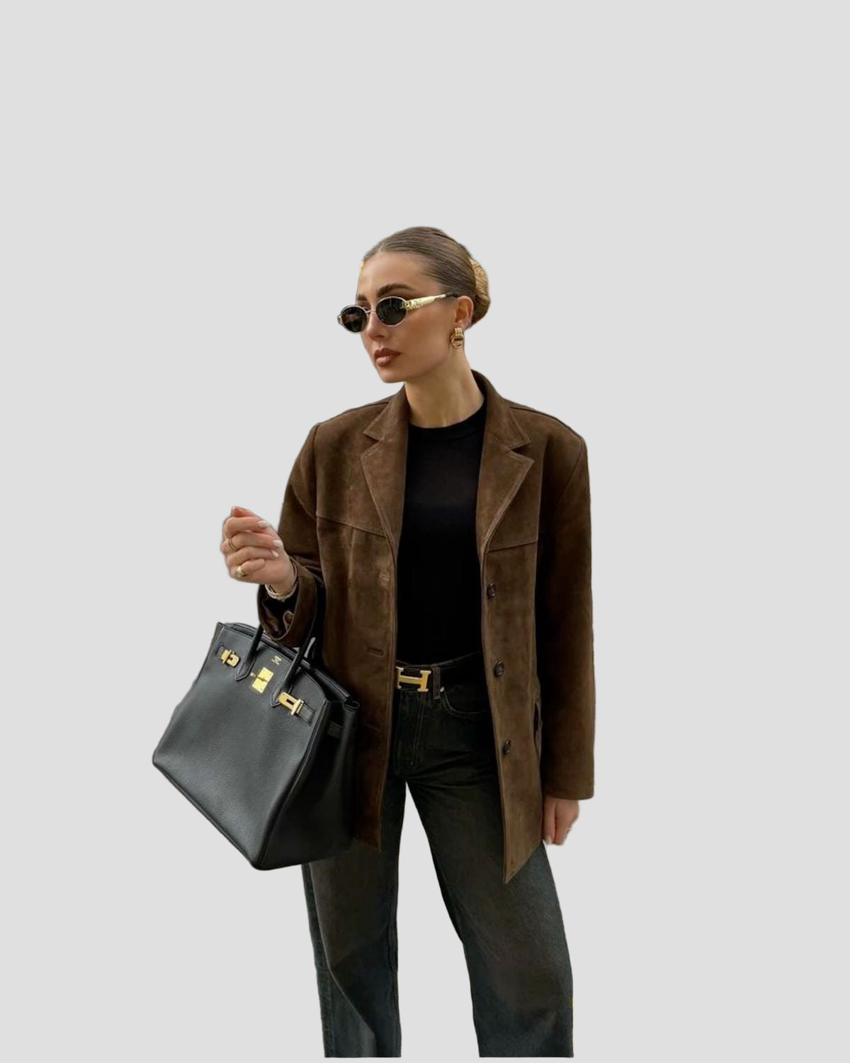 Atraskite savo naują mėgstamiausią zomšininį žieminį paltą! Pasiruošusi užkariauti žiemą su lengvu stilingumu? Ši elegantiška zomšinė striukė yra būtent tai, ko jums reikia!