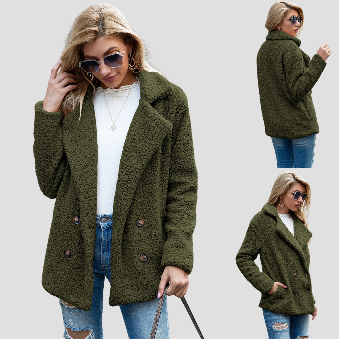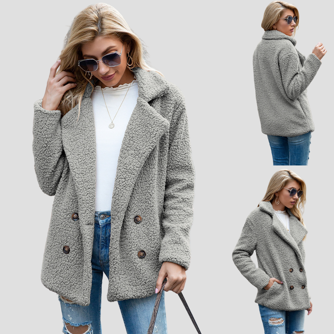 Elegantiškas ir modernus dizainas: Su atverčiamu apykakle ir dviguba mygtukų eile, striukė suteikia kiekvienam įvaizdžiui prabangos.