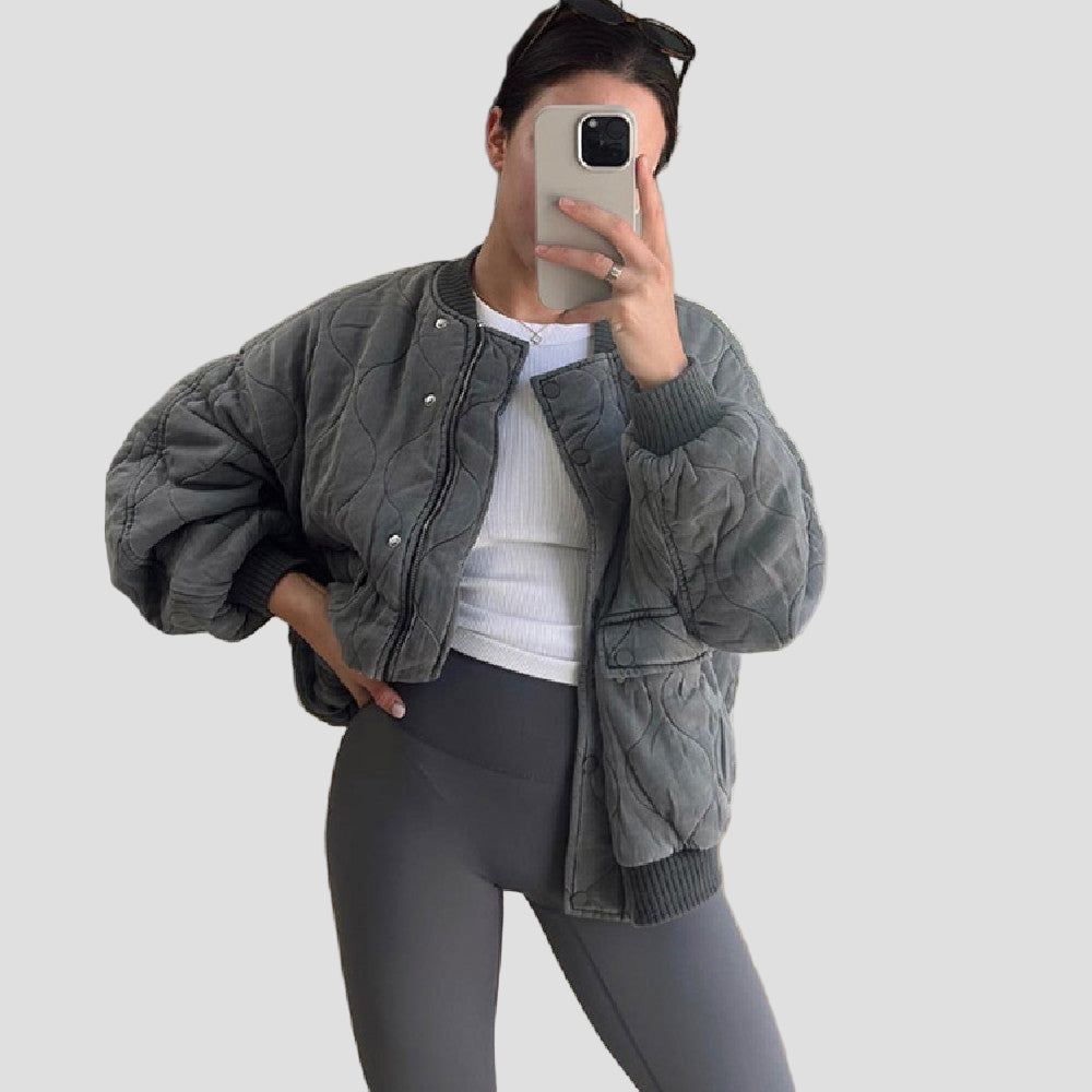 Ši paminkštinta, per didelė bombonešio striukė yra nepakeičiama šį rudenį! Su jaukiais pojūčiais ir ryškiu stiliumi, ji puikiai tinka tiek atsipalaidavusiems brunch'ams, tiek vakarinėms pasivaikščiojimams mieste.